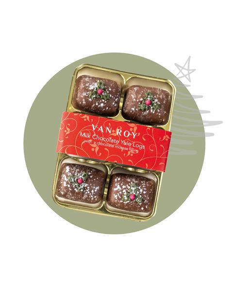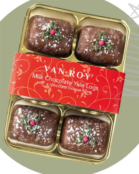 Step into a world of cozy holiday nostalgia with Van Roy Milk Chocolate Yule Logs!